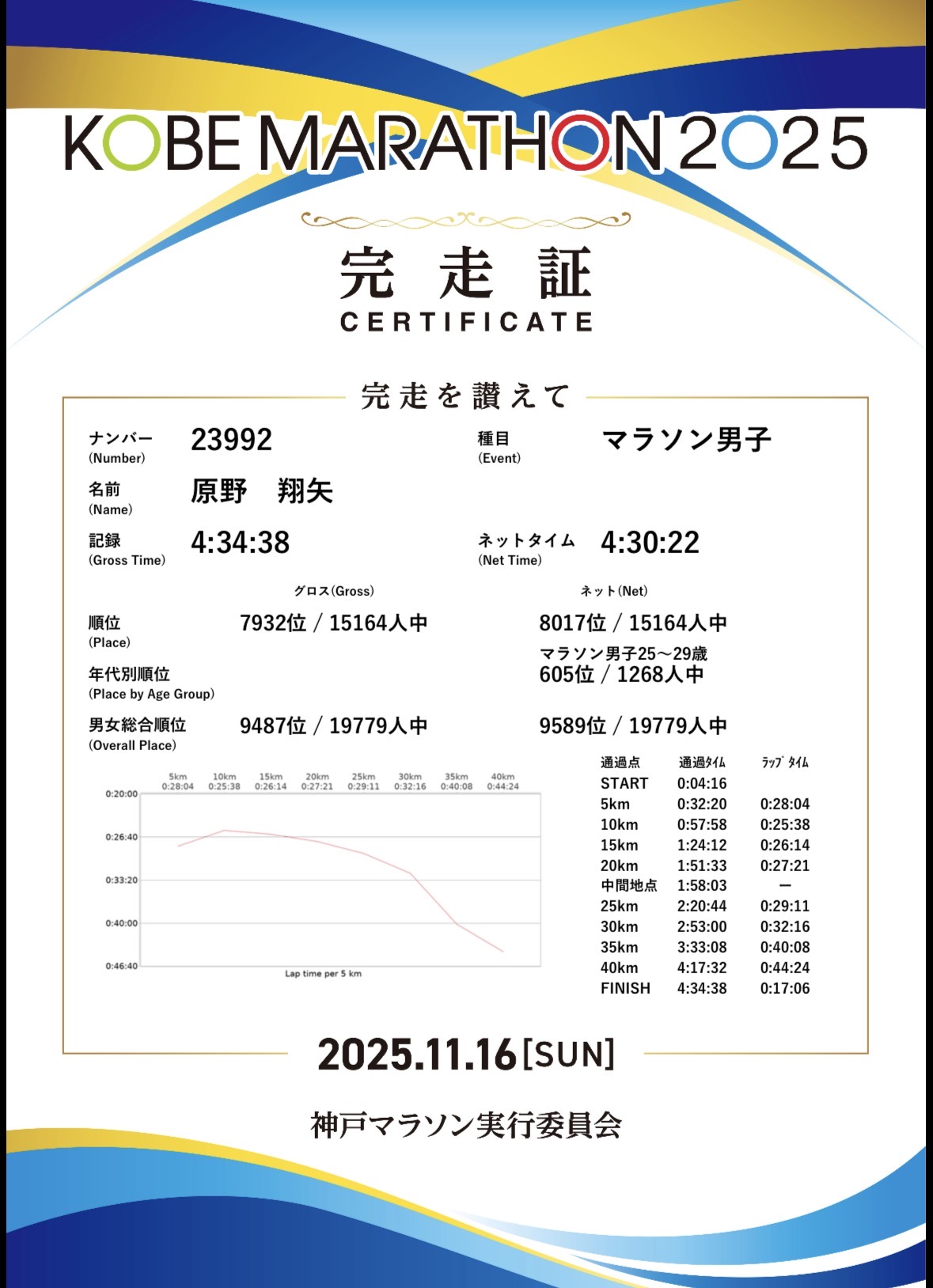 大学4年の時に神戸マラソンを初めて走って、それから社会人3年目の年に一気に2週続けて2回走り、今回で4回目となります。